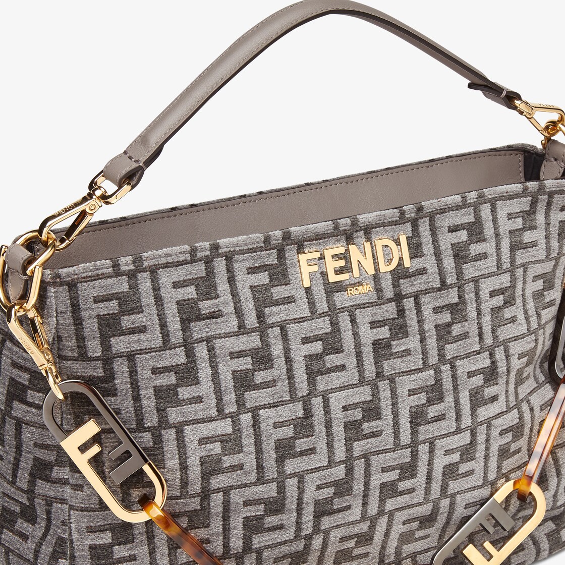 Fendi O Lock Zipper Dark Gray Tapestry Fabric Bag Fendi