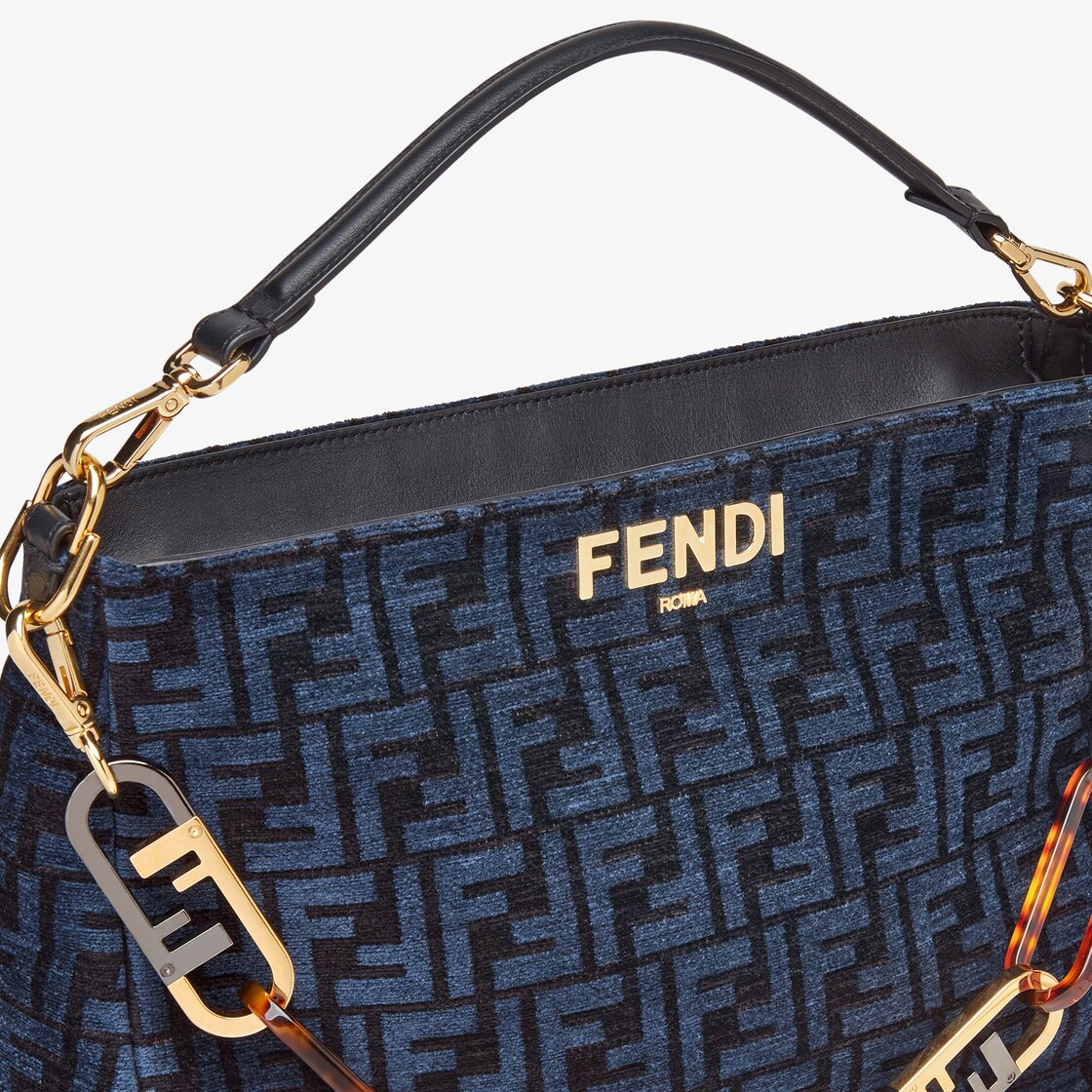Fendi O Lock Zipper Dark Blue Tapestry Fabric Bag Fendi